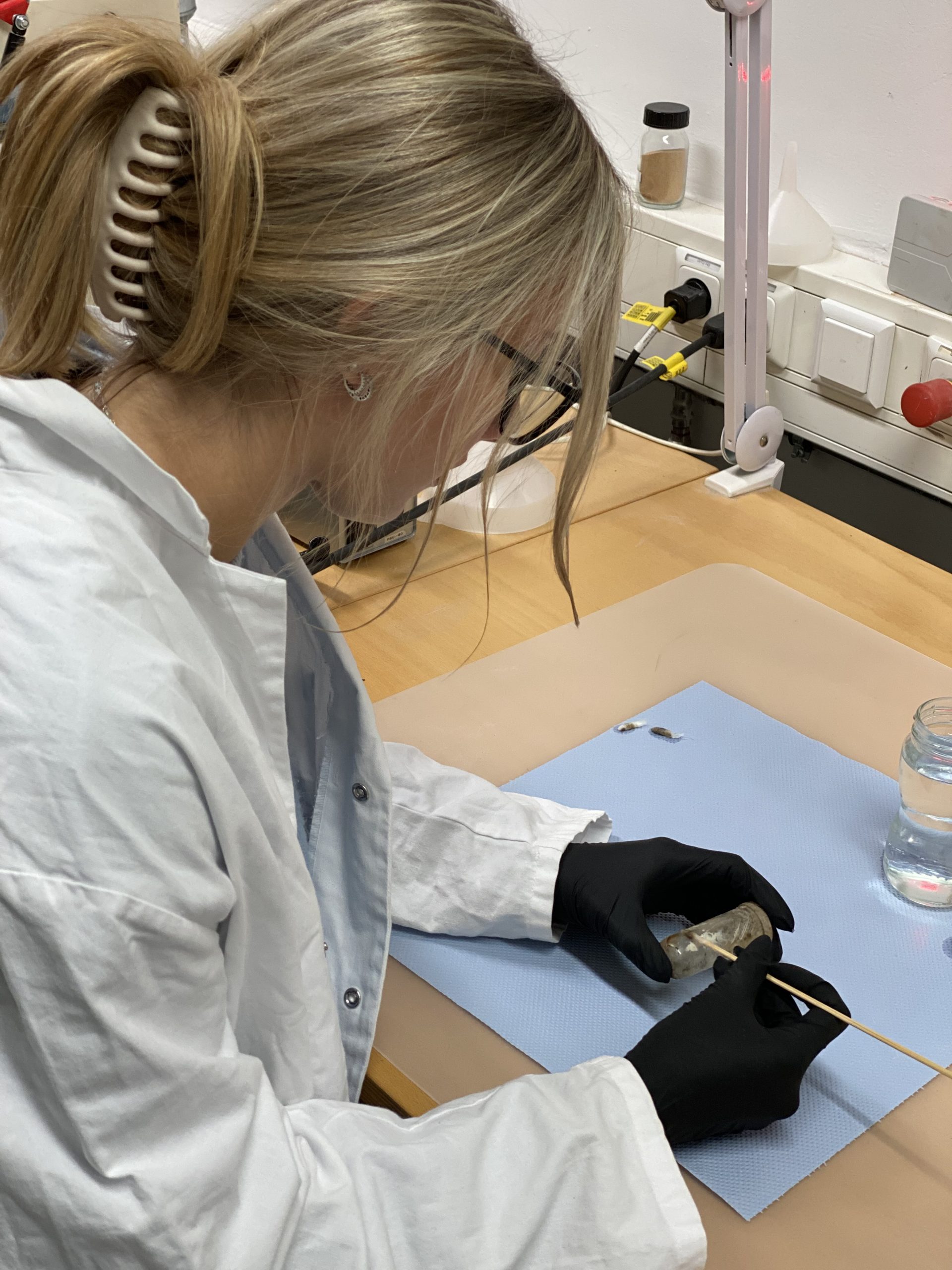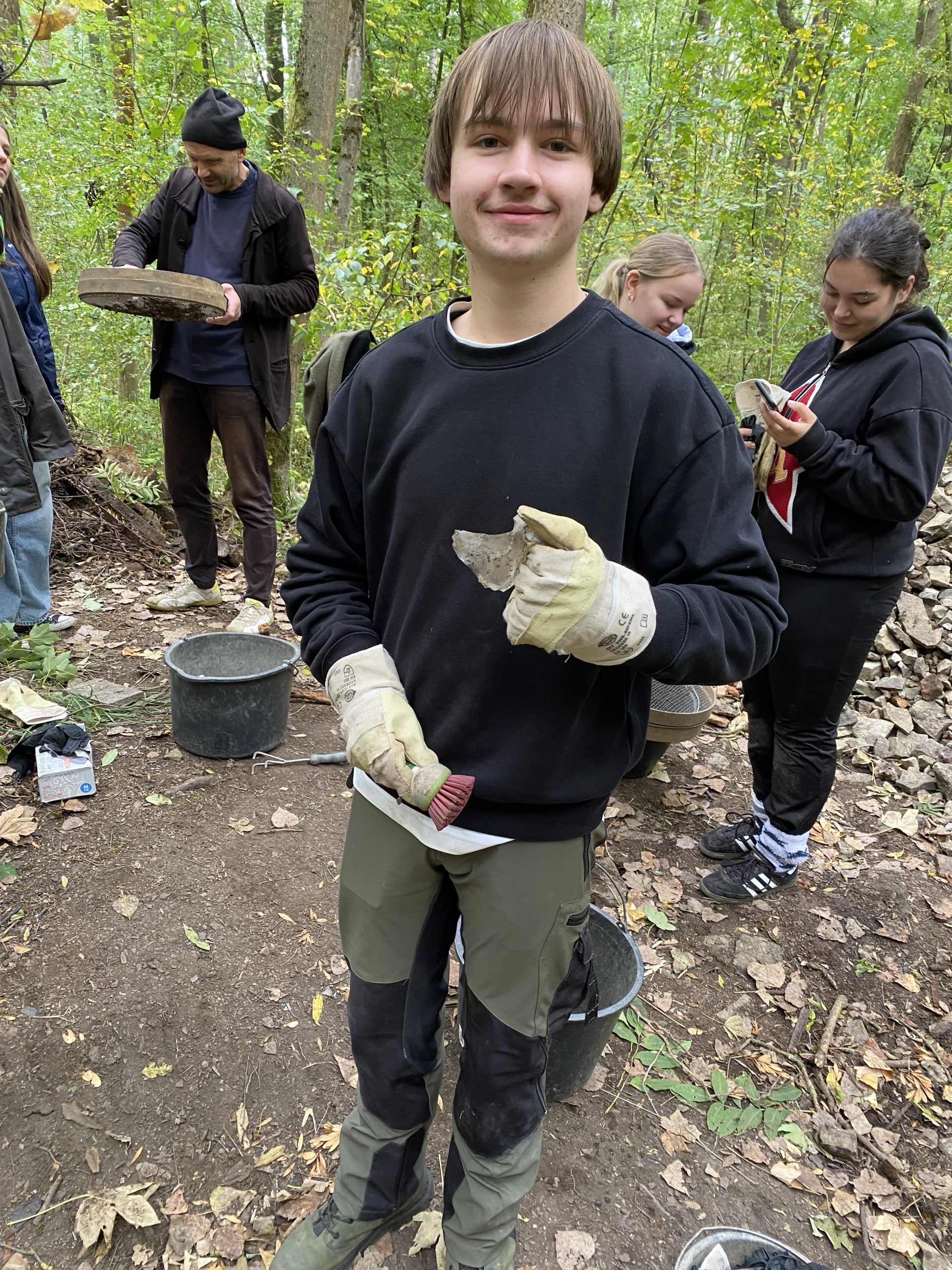 Ein besonderer Programmpunkt war die Arbeit in der Restaurierungswerkstatt, in der wir eigene Fundstücke aus archäologischen Ausgrabungen oder die anderer Schülergruppen reinigen und aufbereiten konnten – eine sehr direkte und greifbare Form der Auseinandersetzung mit der Vergangenheit. Darüber hinaus besuchten wir in Weimar das Museum „Zwangsarbeit“, das die gesamte Bandbreite der NS-Zwangsarbeit dokumentiert und uns vor Augen führte, wie allgegenwärtig das System der Ausbeutung und Entrechtung war.