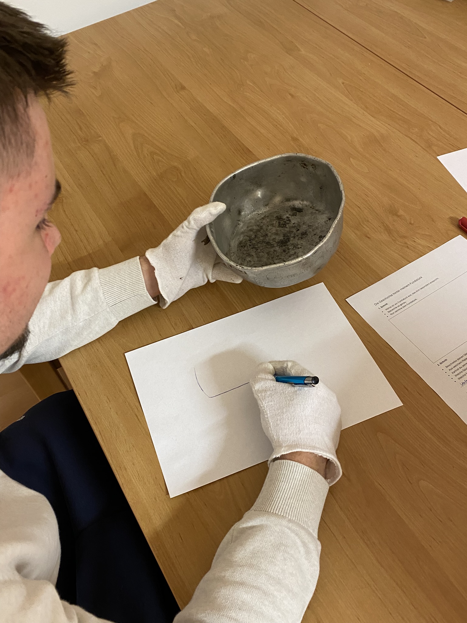 Ein besonders eindrücklicher Programmpunkt war das sogenannte „Entsammeln“. Unter Anleitung unseres Betreuers Ronald Hirte sichteten wir zahlreiche Fundstücke aus archäologischen Ausgrabungen der vergangenen 25 Jahre und entschieden gemeinsam, welche Objekte als bedeutsam erhalten bleiben und welche nicht. Diese Arbeit machte Geschichte auf besondere Weise greifbar: Nicht nur durch Texte und Ausstellungen, sondern durch konkrete Spuren, die Menschen an diesem Ort hinterlassen haben.