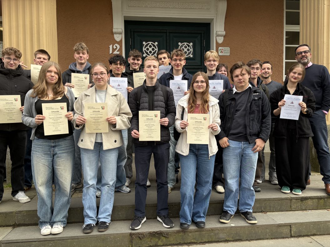 Zwar hat es keines der Teams geschafft, das Landesfinale zu erreichen, für das sich ohnehin nur die besten acht Teams aus ganz NRW qualifizieren. Dennoch zeigten die Teams tolle Ideen und einen kreativen Umgang mit Mathematik bei der Lösung der Aufgabe. Das beste der Teams (Rieke Hasenclever, Anabel Gellhaus, Julian Lange und Ferdinand Heising) hat eine durchaus beachtliche Position im Gesamtranking der Teams aus NRW erreicht und für unsere Schule damit eine Bestleistung in diesem Wettbewerb erzielt.