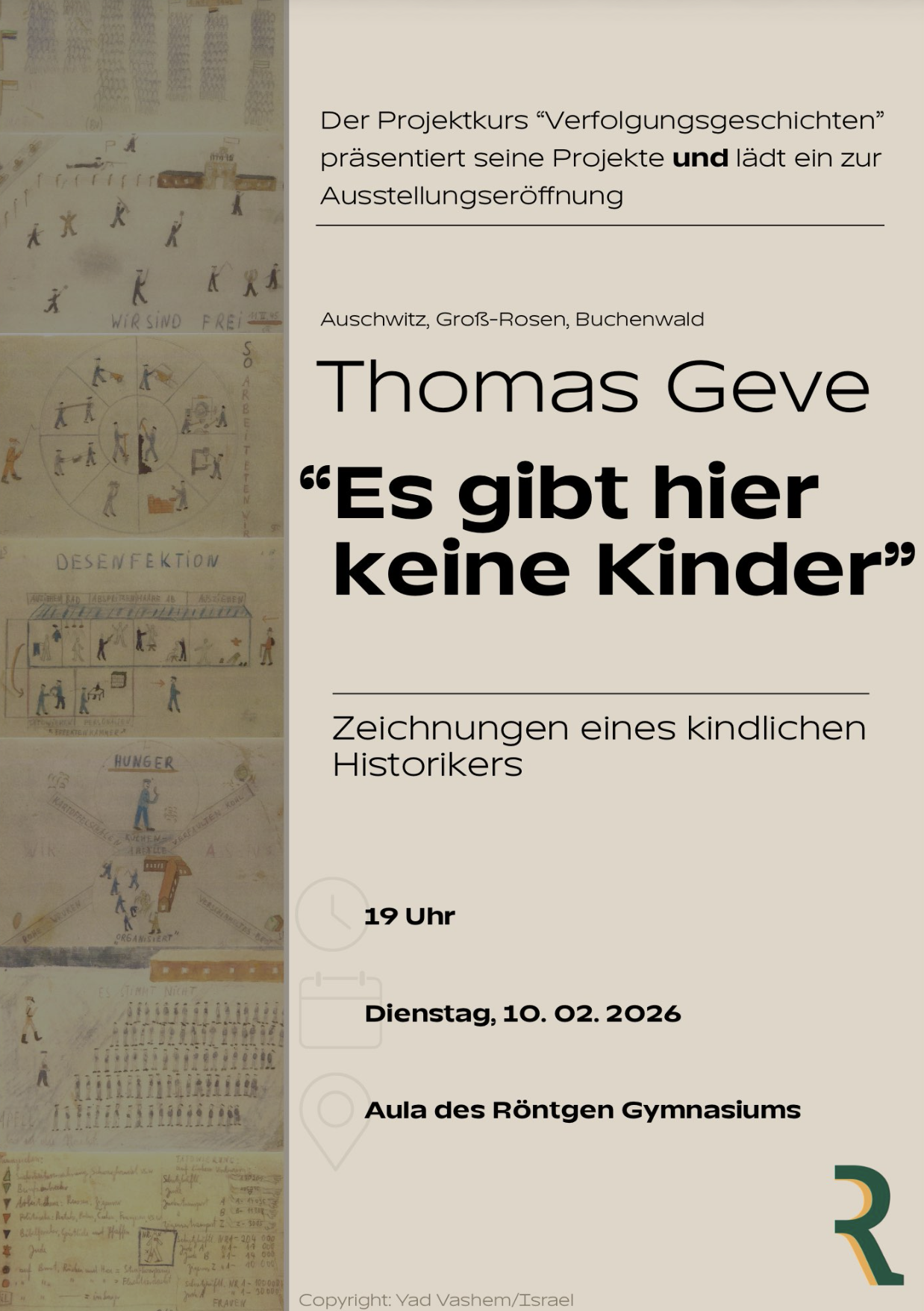 Am Dienstag, den 10. Februar, um 19 Uhr, laden wir herzlich zum Präsentationsabend des Projektkurses „Verfolgungsgeschichte(n)“ der Q2 in die Aula ein. Der Abend findet in einem besonderen Rahmen statt und ist zugleich die Eröffnung der Ausstellung